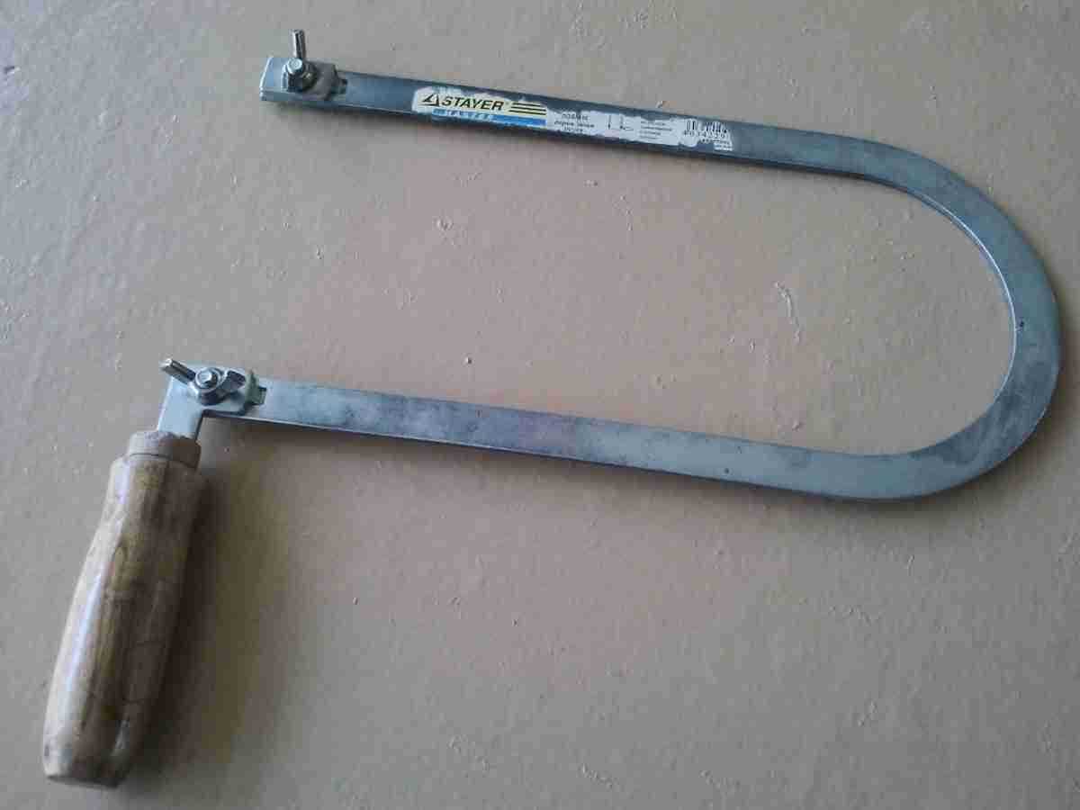- Ручной лобзик. Самое простое приспособление, которое используют для выпиливания. С помощью лобзика даже самую тонкую работу можно выполнить своими руками, но вот для толстого материала или длинных пропилов он практически не пригоден.