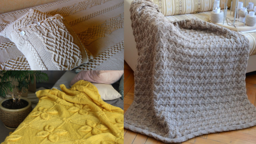 Оригинальные покрывала и пледы спицами