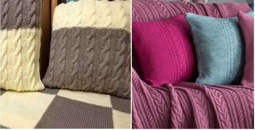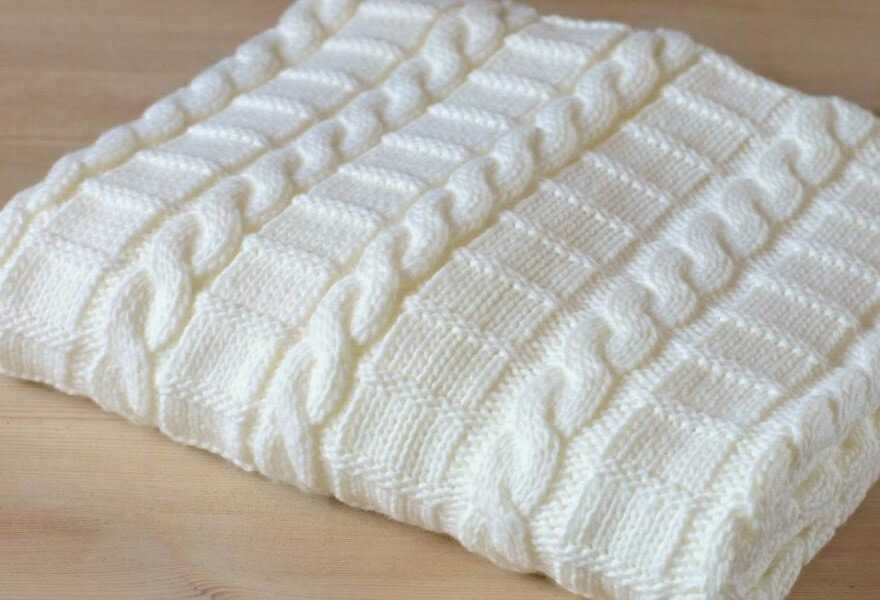 Из толстых волокон получают теплые одеяла. Основное преимущество – скорость в творчестве. Опытным вязальщицам достаточно несколько часов. Лучше выбирать несложные узоры. Например, «ромб» для основного полотнища и «путанка» для окантовки.
