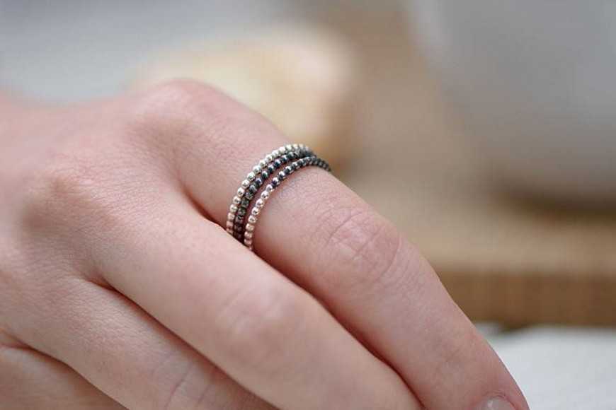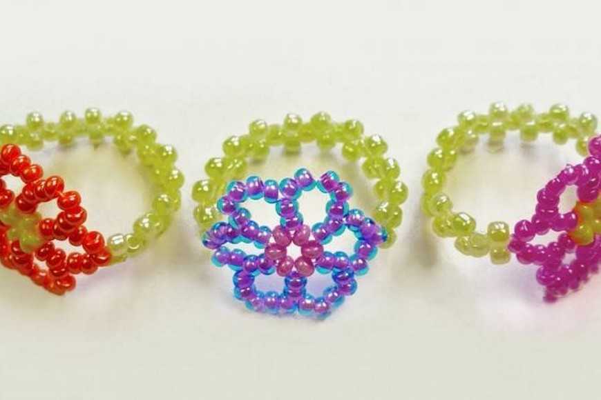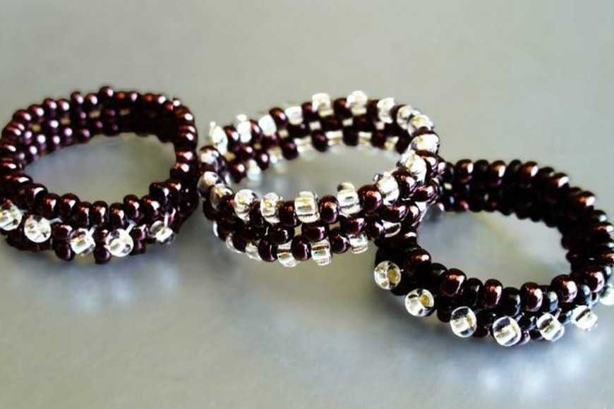 Новички начинают изучение, как плести колечки из бисера и лески, с самых простых техник. Лёгким считается плоское параллельное плетение по проволоке. Готовые украшения состоят из рядов набранных бусинок.
