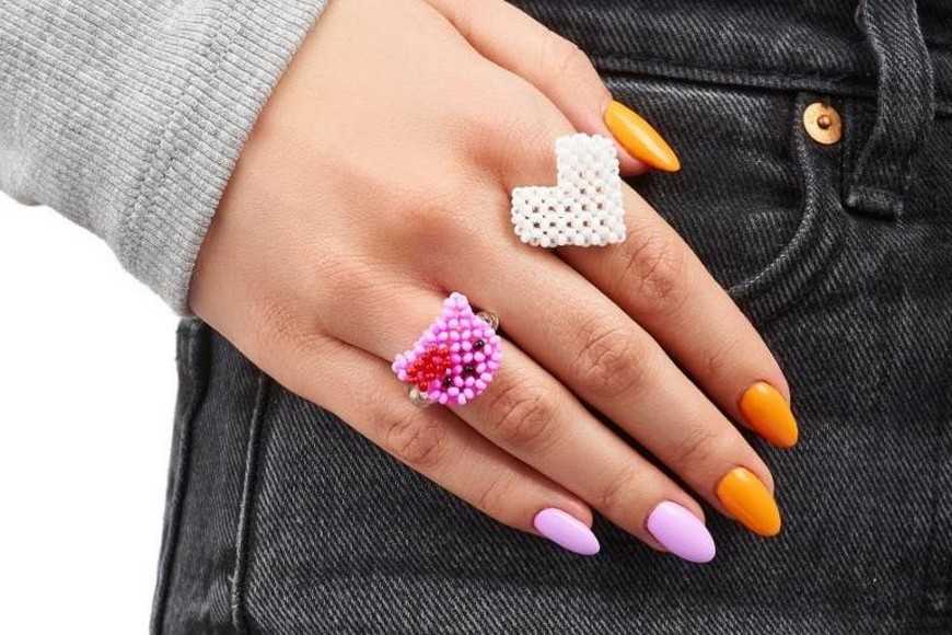 - Лёгкость. Многие схемы колец из бисера простые настолько, что вообще не требуют строгого соблюдения и могут меняться прямо в ходе работы. Сделать элементарное украшение можно за 30-60 минут, в один приём.