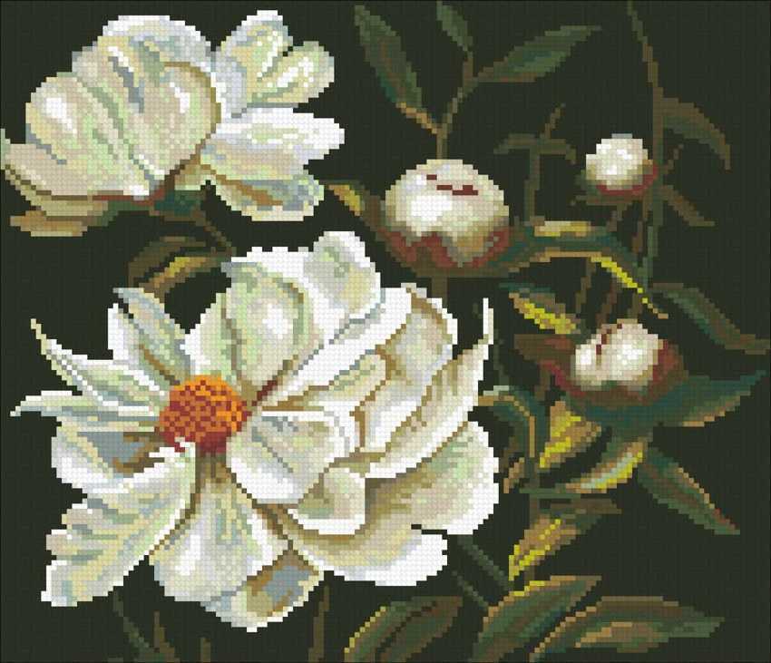 - алмазная вышивка — по сути, самоклеящаяся мозаика, в комплект которой входит основа с напечатанным в виде клеточек нужного размера рисунком, покрытая клейким слоем, и выпуклые с лицевой стороны граненые пластиковые частички размером в пару миллиметров. Из них пинцетом и собирается узор;