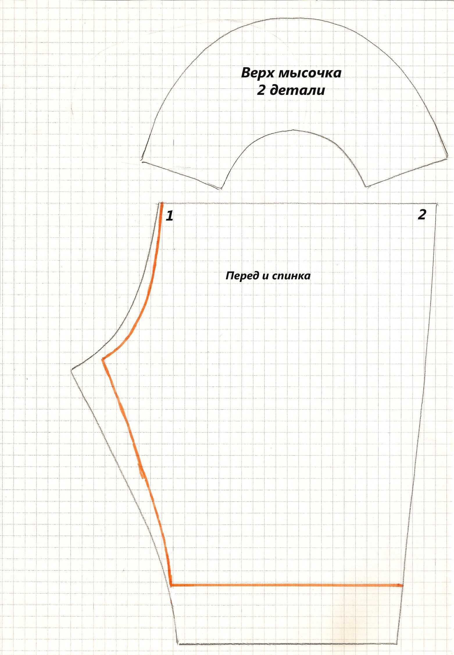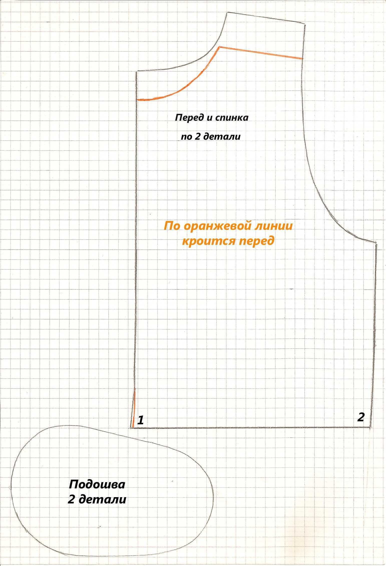 Для пошива комбинезона для беби бона можно воспользоваться этой выкройкой, которая показана на рисунке. Придется немного её удлинить. Для этого нужно измерить длину ноги по внутренней стороне, а затем перенести эту величину на выкройку на линию шага.