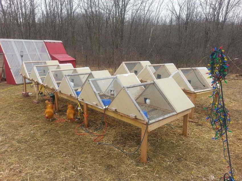 Для молодняка необходимо рассчитывать размеры помещения индивидуально. При учете того, что на одну особь должно приходиться около 0,12 м², размеры можно оставить такие же, как и для стандартной клетки, только регулировать наполненность помещения.