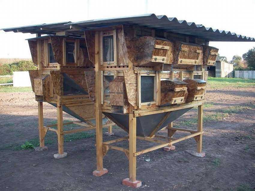 В клетках, построенных по методике Золотухина, нет влагопоглощающей постилки из соломы. Поэтому в них всегда сухо, а для уборки требуется минимум времени.