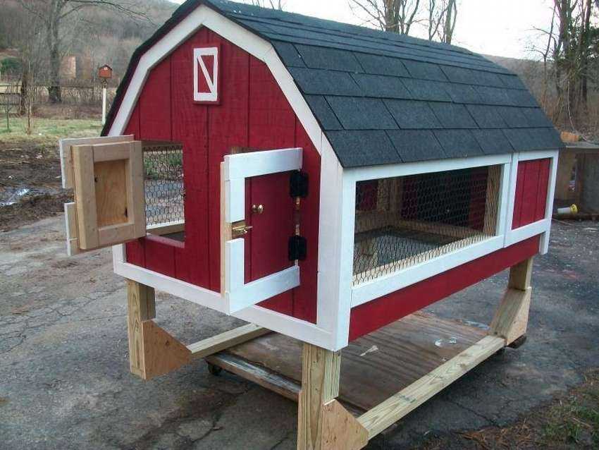 Дверцы и люк для загрузки корма располагается на передней стенке, а не сверху, как у одноэтажных конструкций. Наглядно увидеть такое обустройства помещения можно на фото.