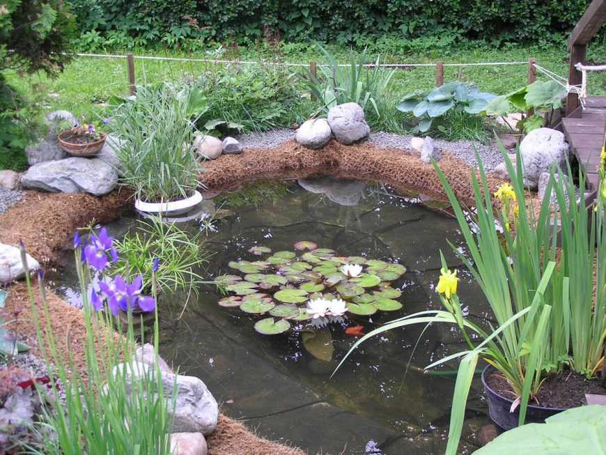 В водичке могут плавать кувшинки, ряска, рогульник. Это придаст прудику ещё больше очарования. Обустройство волшебного водопада добавит творению изящества.