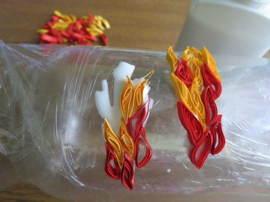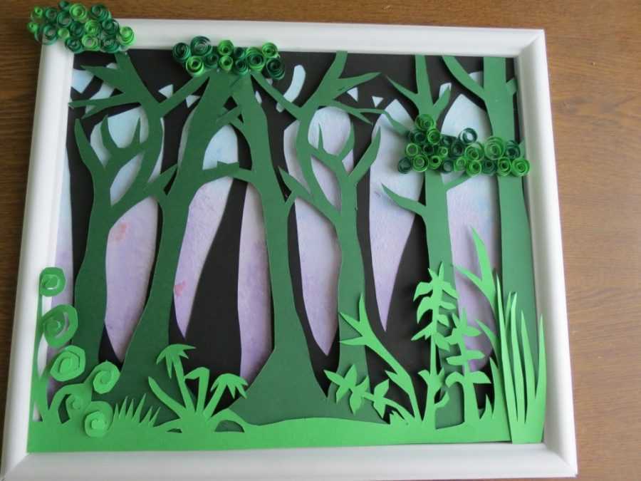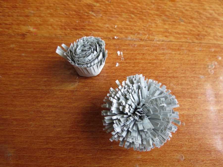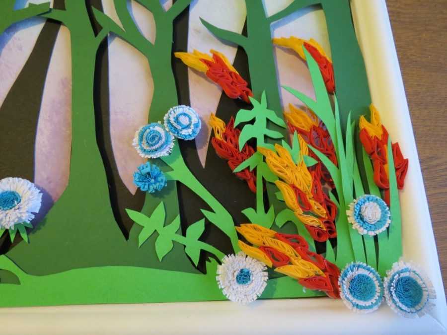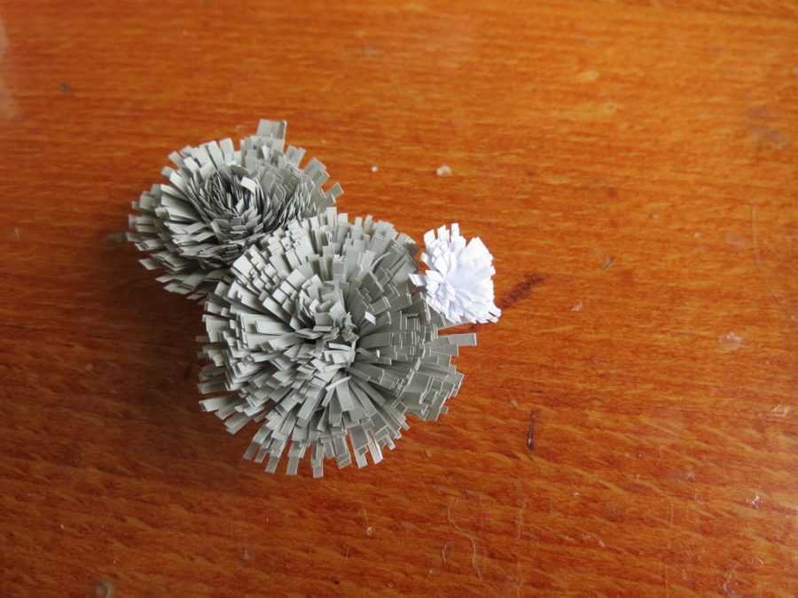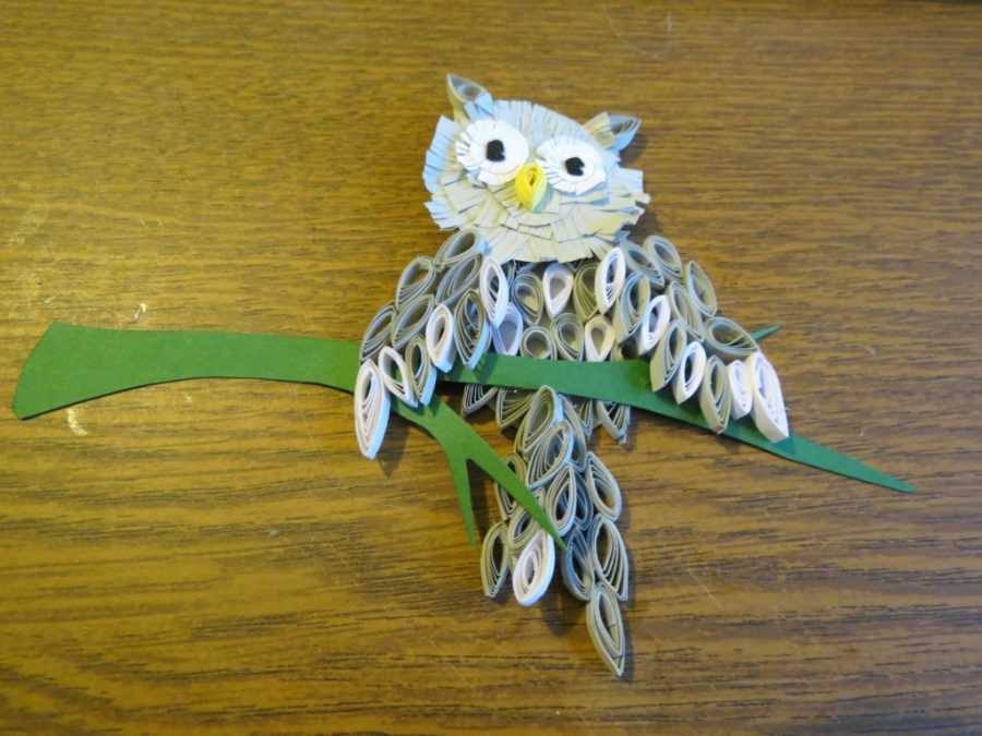 Для изготовления таких поделок нужно нарезать полоски необходимых цветов шириной от 3 до 10 мм. Далее, нужно разместить скрученные полоски и их концы закрепить клеем. Все объемное изображение в конце размещают на основе (картоне) и фиксируют с помощью клея.
