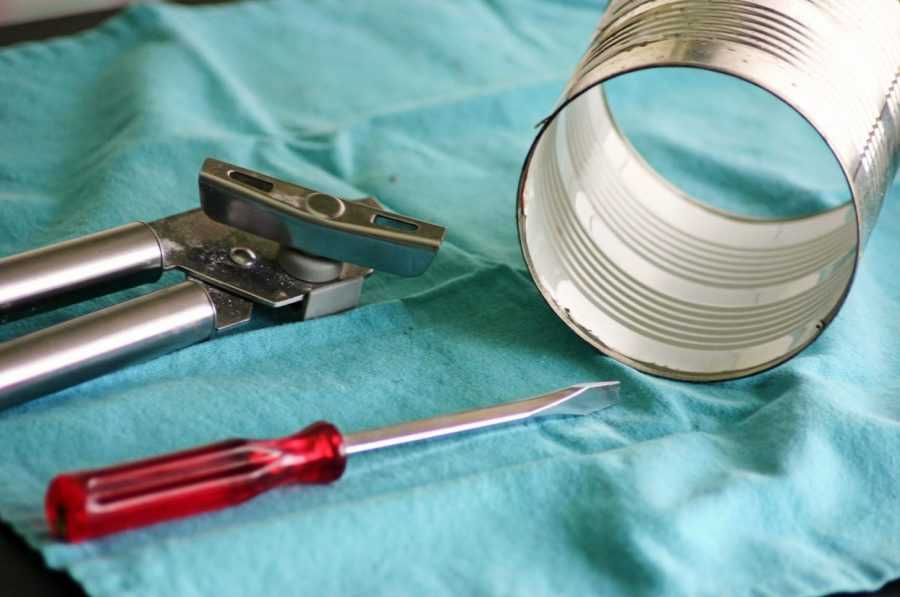 2. Воткните нитку в иголку и насквозь этой иголкой проткните баночку с клеем. Так нитка будет равномерно проходить через клей и соответственно будет вся покрыта этим клеем.