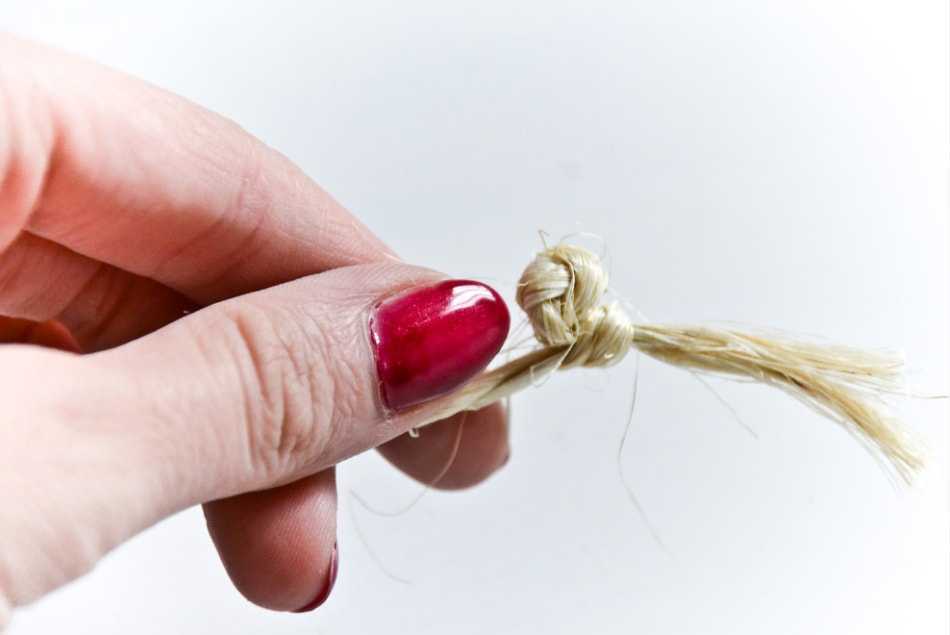 На конце веревки завязываем крепкий двойной узел, как показано на фото.