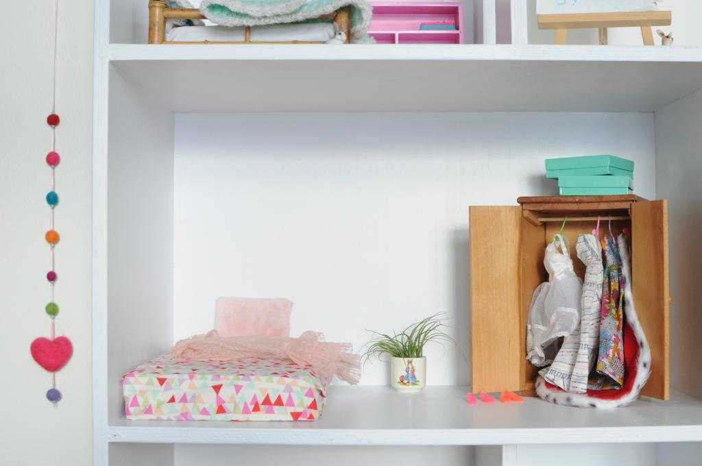 Наверняка в каждом доме найдется не очень-то нужный стеллаж с открытыми полками. Или вы можете купить новый. В любом случае рекомендуем вам использовать данный вид мебели для создания полноценного жилища для кукол дочери.