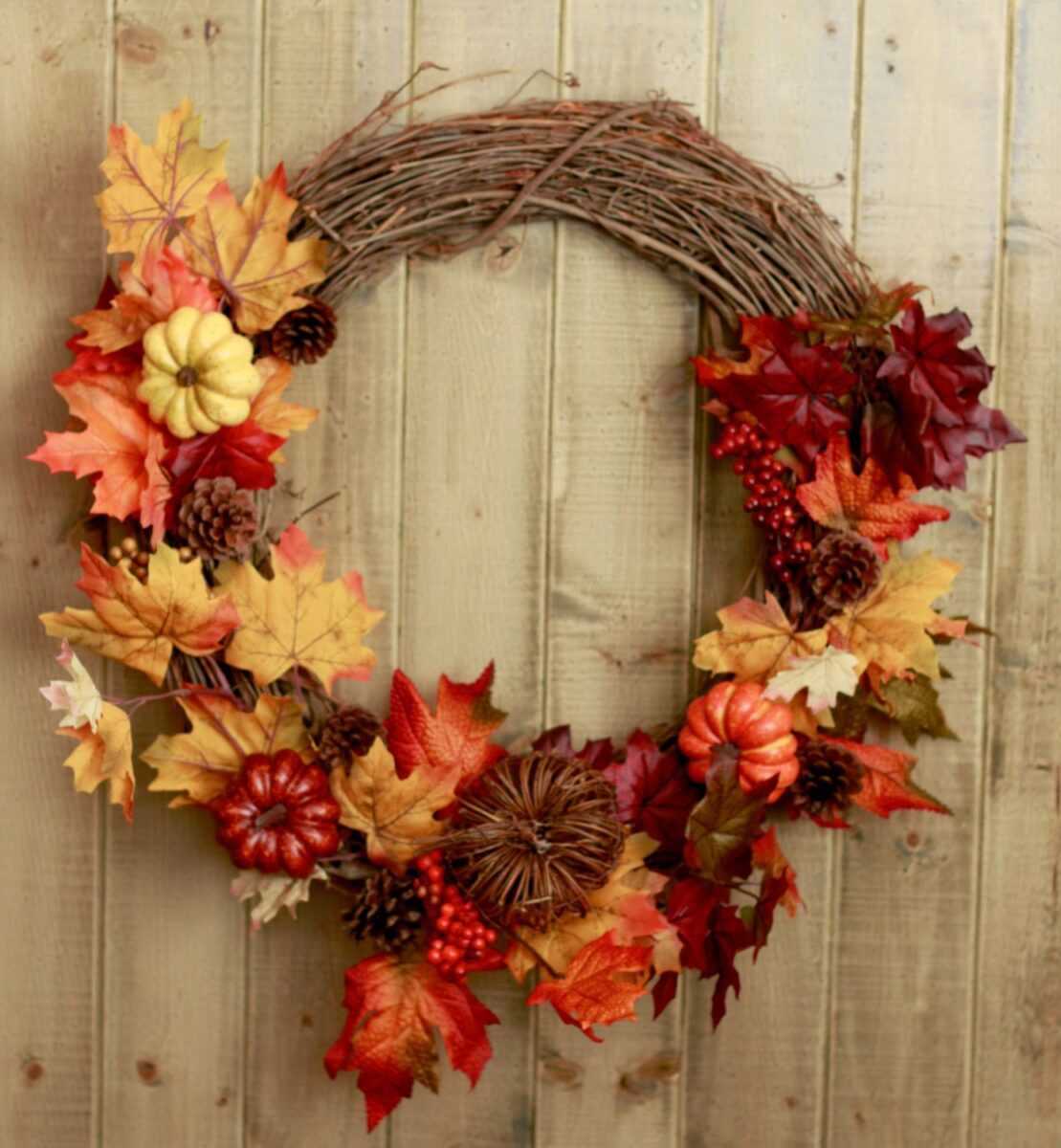 - Чтобы каштановый венок выглядел торжественнее, его можно украсить лентой.
