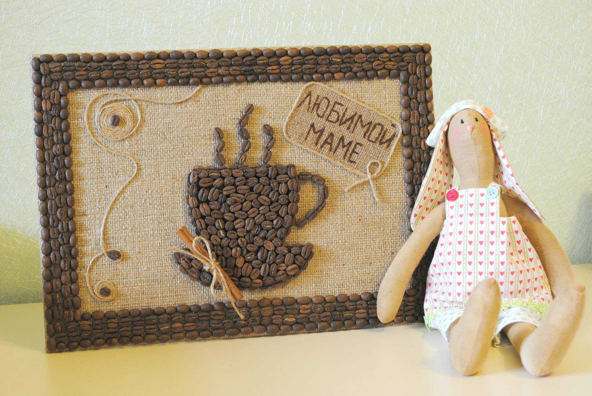 При помощи зерен можно сделать так называемое дерево счастья или топиарий. Такой необычный предмет хорошо вольется в интерьер кухни и станет его оригинальным украшением. Самые красивые поделки получаются из зерен кофе.