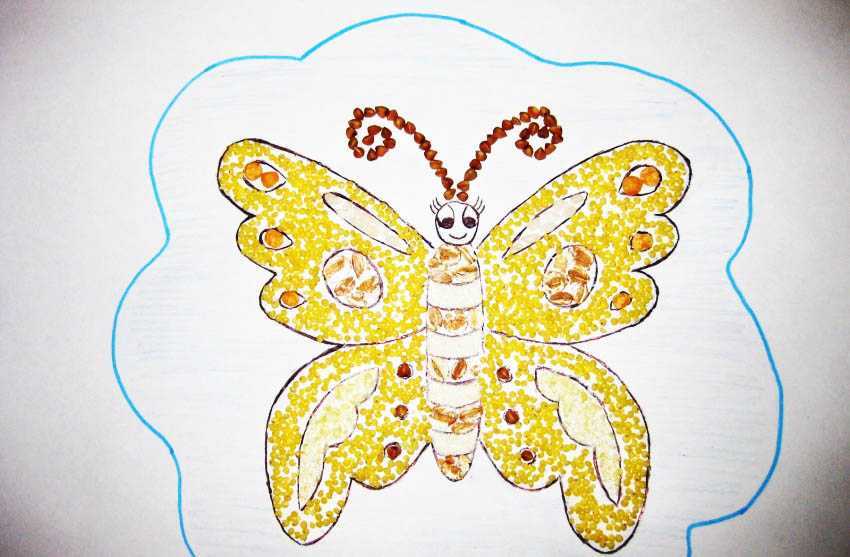 И здесь важно не руководствоваться принципом «что не жалко», а понять, с чем удобнее работать детям. Для начала можно сделать поделку из одной крупы, но гораздо интереснее смотрятся аппликации из разных вариантов по форме и по цвету