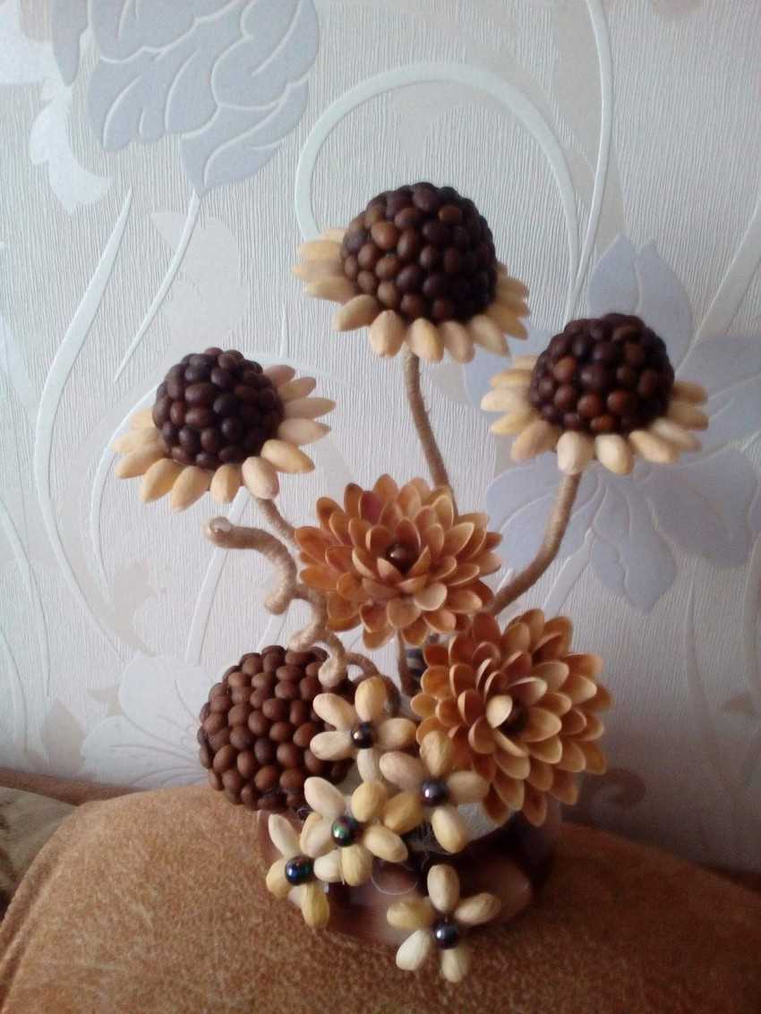 Косточки фруктов и зерна кофе – обычно их берут для оклеивания объемных фигур или в качестве основы