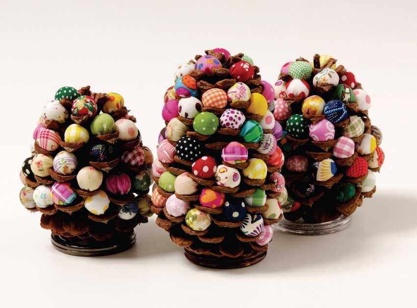 Еловые шишки можно предварительно подготовить, замочив их в воде, а потом придав им нужную форму, зафиксировав влажный материал в согнутом или в сжатом виде.