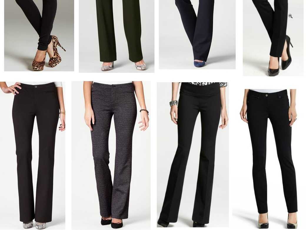 Чтобы визуально ноги казались стройнее, длину штанов делают до каблука, но в зависимости от фасона этот параметр меняется: