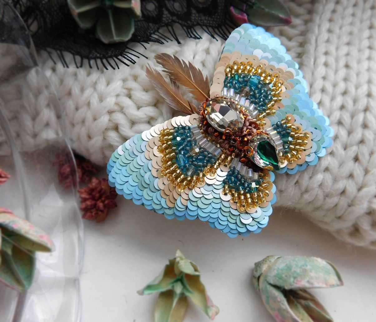 Помимо нитей, иголки и пайеток, в работе используется бисер. Его подбирают в тон пайеткам.