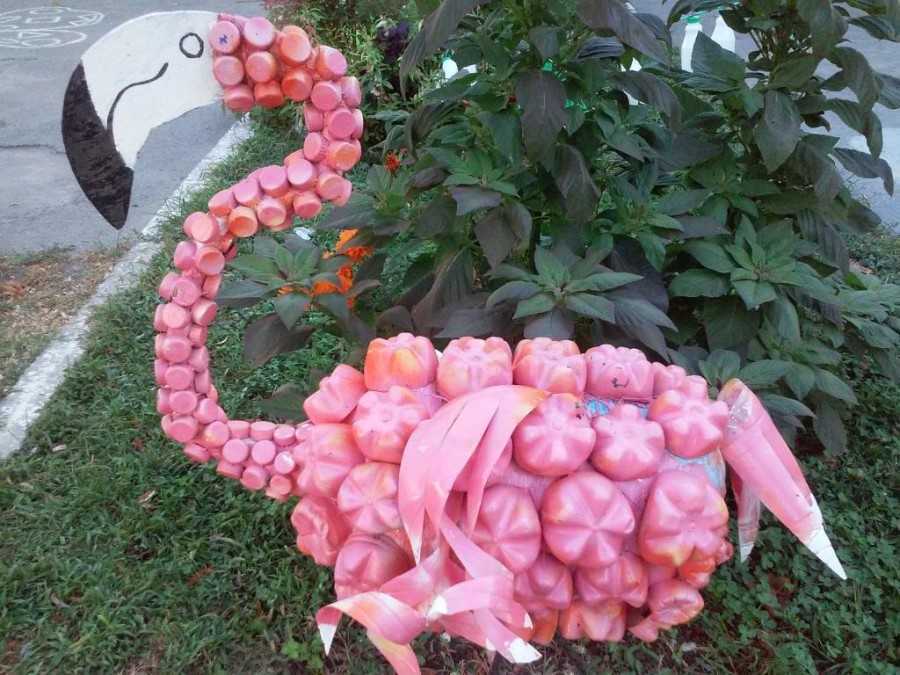 Розовый фламинго из обычных пластиковый бутылок