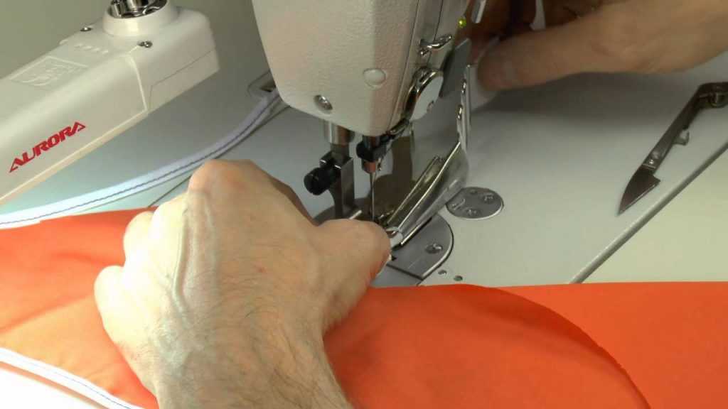 - подключить машину к сети питания и начать работать, поддерживая ткань и регулируя направление шва вручную;