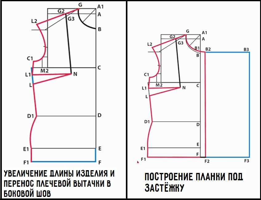 Передняя часть выкройки (полочка) тоже потребует изменений.