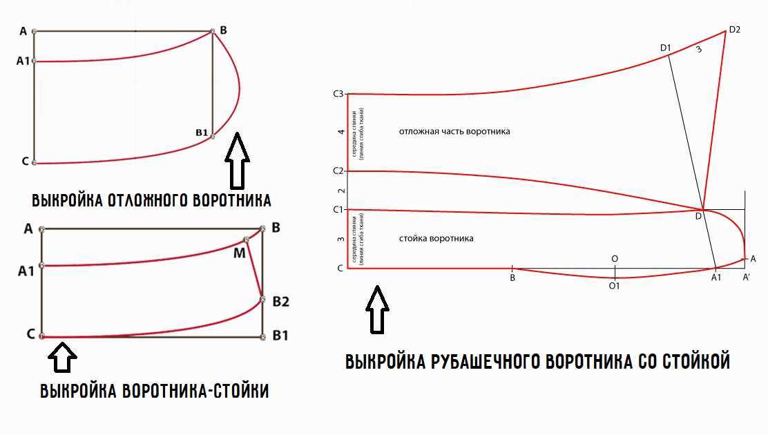 Выкройка воротника выбирается в зависимости от выбранного фасона.