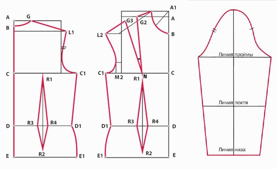 При моделировании коррективы вносятся в выкройки спинки, полочки и рукава.