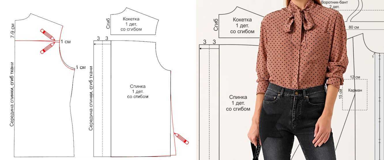 Спинка — тот элемент выкройки, который, как правило, содержит в себе вытачки. Именно там осуществляется сборка блузки. Поэтому стоит особенно аккуратно делать эти вытачки и соблюдать все размеры.