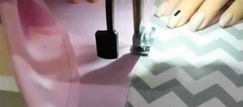 - Нижняя часть изделия делится на три части: две по 40 см, одна 20 см. Берём один бок изделия, прошиваем на низ. На одной стороне оставляем двадцать сантиметров. Их не прошиваем. Это будет отверстие, в которое в последующем мы вставим наше одеяло. Оставшиеся сорок сантиметров «проходим» на машинке. В конце каждой строчки делаются закрепки.
