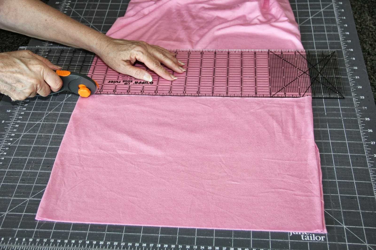 Измеряем ширину верхнего среза, при необходимости предварительно выровняв его ножницами. Для узла по косой выкраиваем полоску шириной, равной двойной ширине верхнего среза с прибавлением припуска.
