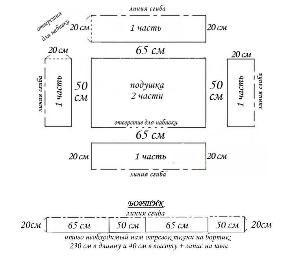 Что бы вы ни выбрали, начать шитье лежанки для собаки нужно с построения выкройки. Выглядит она следующим образом.