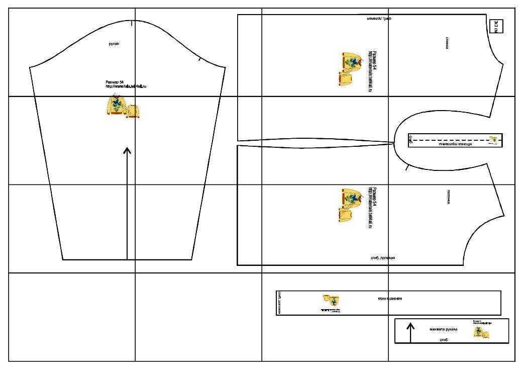 Полученный чертеж в масштабе 1:6 можно распечатать на формате А4 и перечертить его в натуральную величину, если у Вас есть соответствующие навыки, можно сохранить чертеж на жесткий диск в масштабе 1:1 и дальше работать с чертежом используя графические редакторы.Для демонстрации полочка и спинка перечерчены традиционным методом, а чертеж рукава распечатан в натуральную величину на нескольких листах А4 и затем склеен.Как распечатать чертеж на нескольких листах можно прочитать в публикации Как распечатать и склеить выкройку.
