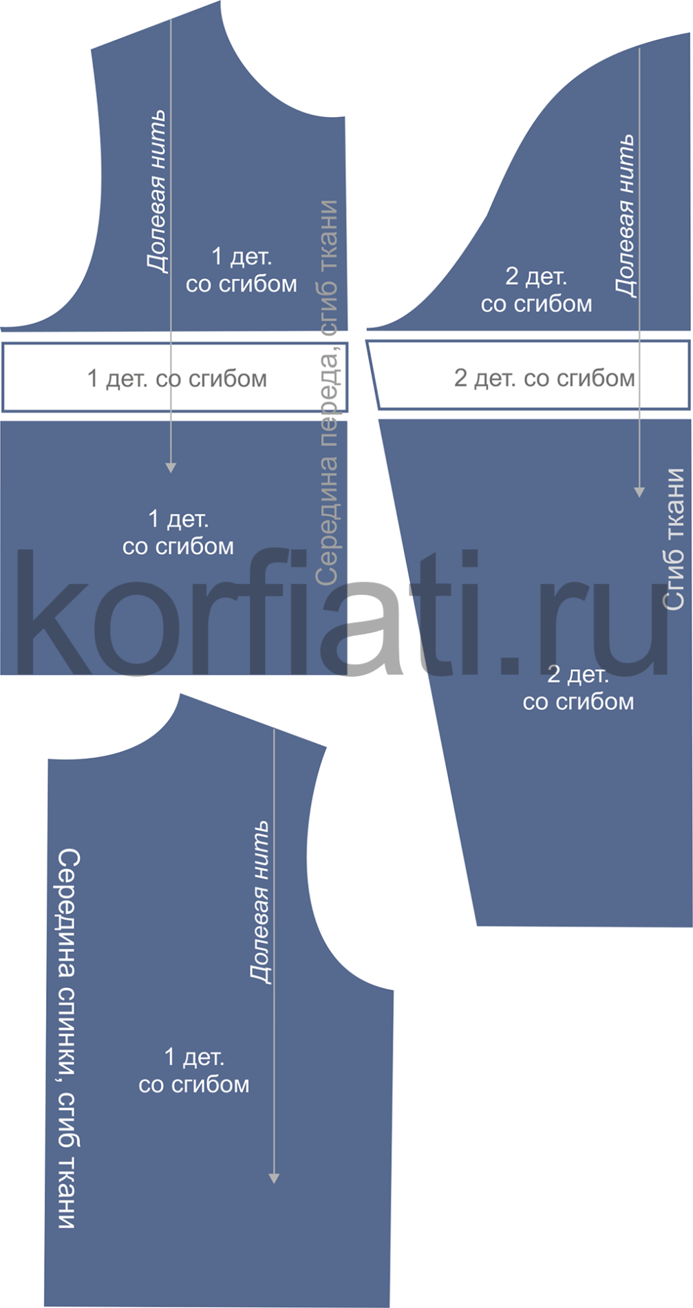 При раскрое соблюдаем направление долевой нити, как указано на схеме.