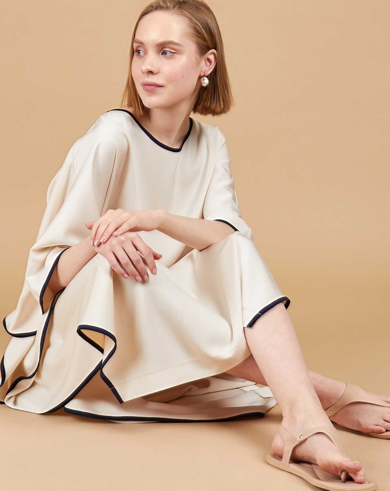 Самой универсальной длиной по мнению стилистов является длина миди. Весьма функциональные наряды скрывают недочеты силуэта и показывают самую привлекательную часть женской ножки. Повседневные платья летучая мышь средней длины прекрасно вписываются в деловые, рабочие ансамбли, комплекты для учебы и весьма украшают своим присутствием уличный и городской стиль.