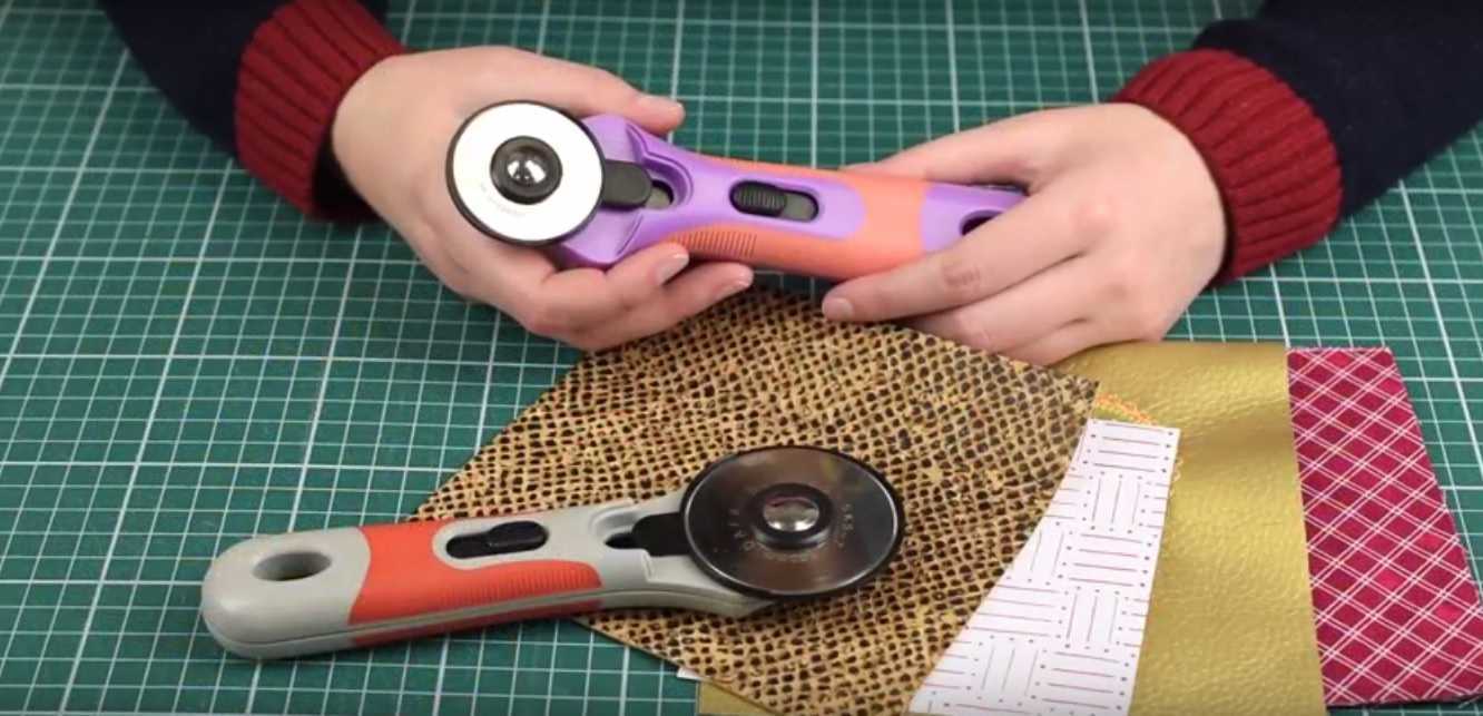 Самая распространенная модель, для домашней раскройки. Он имеет круглое лезвие, которым можно идеально резать ткань. Но нужно учитывать, что выкройку сложной формы им резать довольно проблематично, тут придут на помощь старые добрые ножницы. «Подошва» после самого диска, помогает прижимать ткань плотнее к поверхности, таким образом можно делать рез нескольких слоев.
