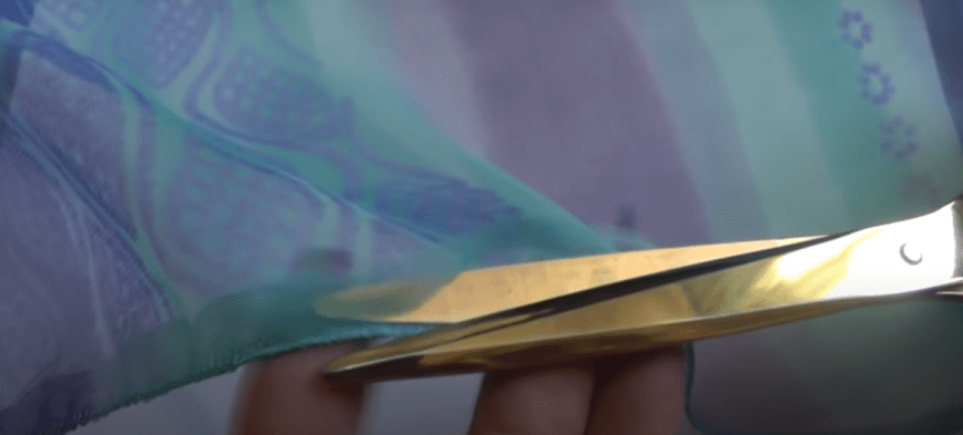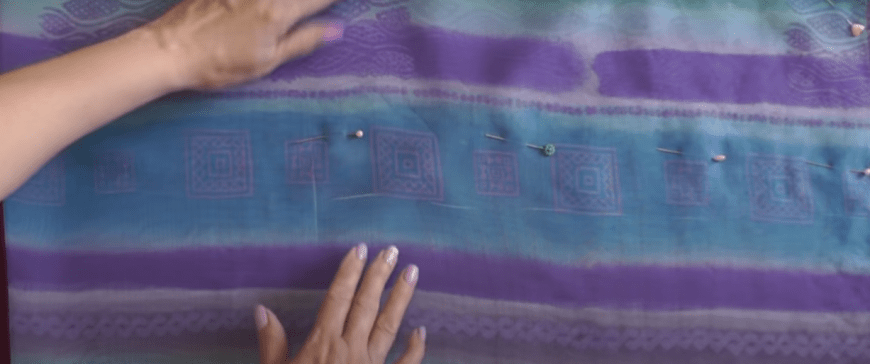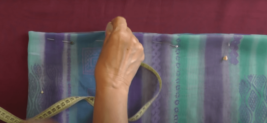 - Сложить ткань пополам.
