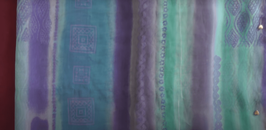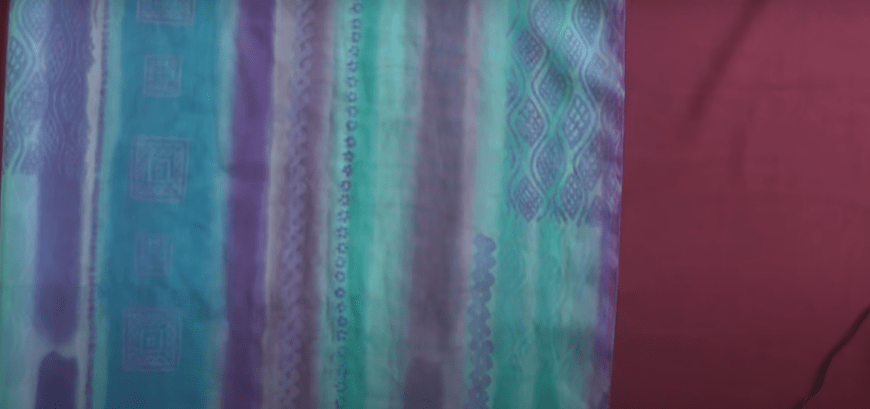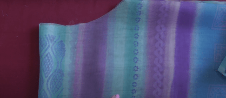 - Возьмите два одинаковых шелковых платка. Наметьте и наметайте линии плеч (оставляя вырез для горловины) и боковые швы.