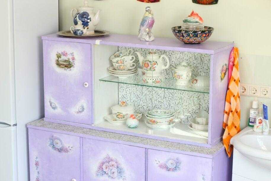 Те, кого интересует переделка мебели своими руками – вот вам идеи, как обновить старую советскую стенку с декупажем и новой краской: