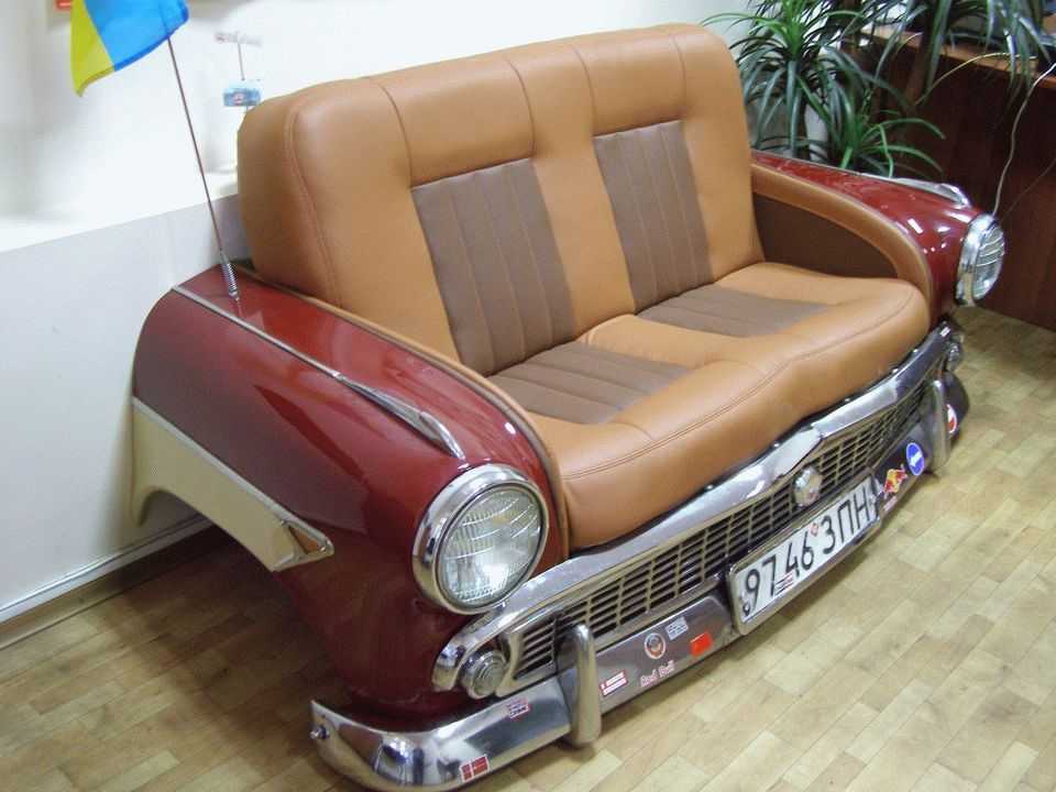 Такие изделия сделают интерьер ярким, стильным, придадут ему настоящий мужской характер. Например, диваны сделанные из машины, отлично впишутся в современную гостиную, комнату подростка, оригинальное автокафе, пр.