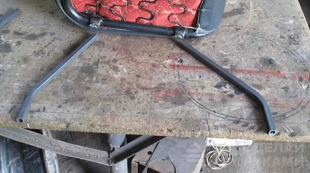 Сами ножки кресла необходимо немного согнуть в нижней части. Для этого автор использует гибочный станок. Если у вас нет такого станка, его можно сделать своими руками — подробнее читайте здесь.