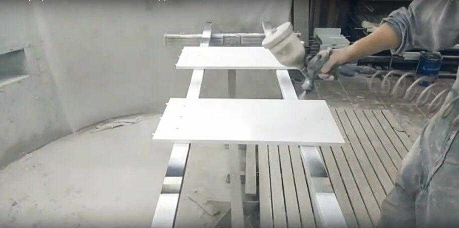 После этого останется только приварить проножки и пятаки на ножки — для большей устойчивости. Последний штрих — это шлифовка и покраска.
