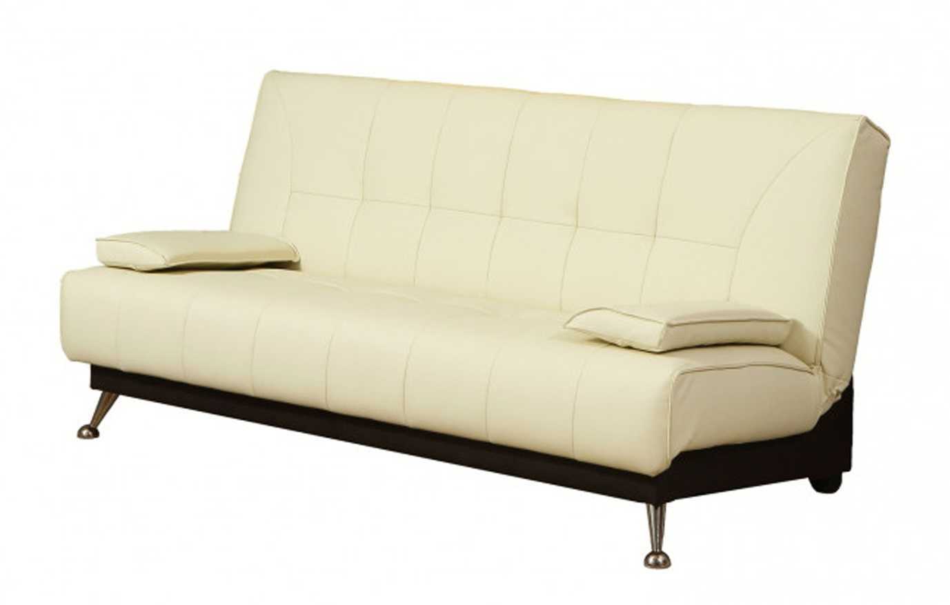 - Раскладушка. Механизм расположен в нише под сидением. Часто можно встретить кожаный бежевый диван такого типа раскладывания.