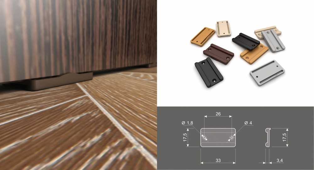 Рис. 8. Прямоугольный пластиковый подпятник, который крепится саморезами |