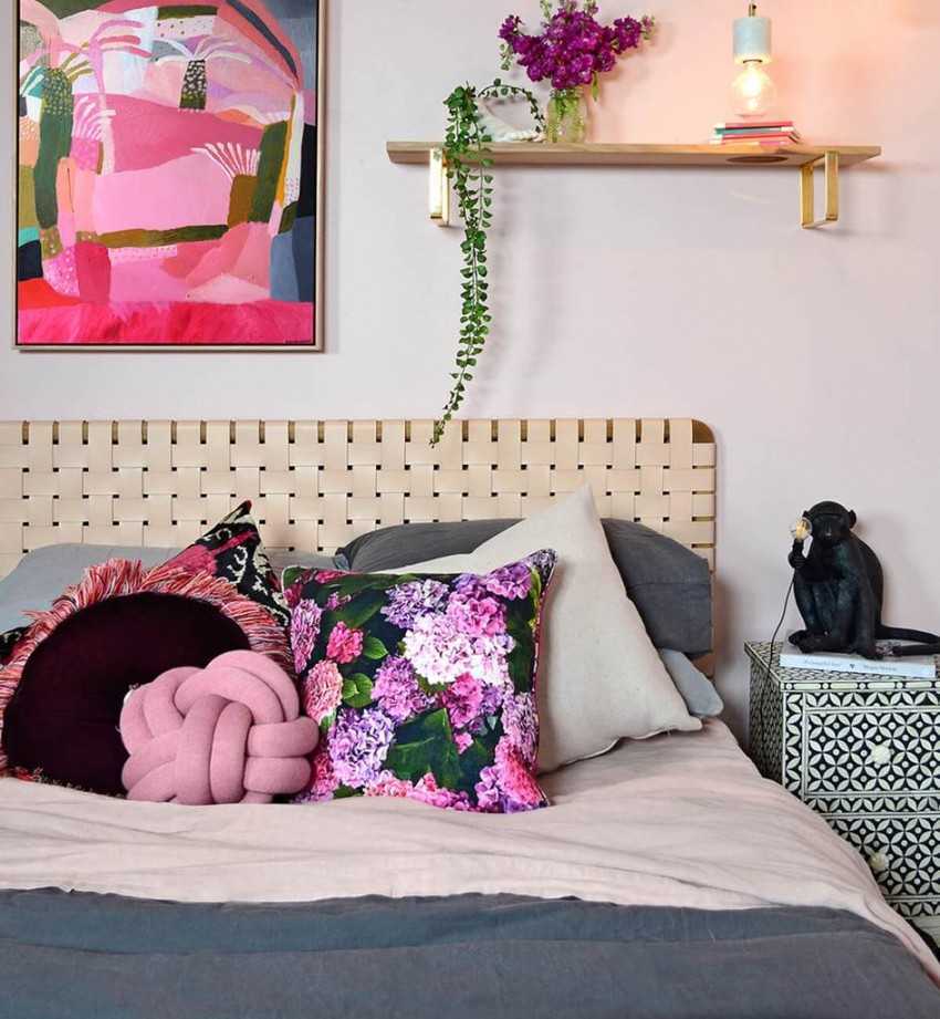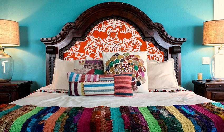 Будет неплохо сшить 2-3 наволочки для декоративных подушек из узорчатого материала, который пошел на изголовье. И тогда спальня буквально преобразится.