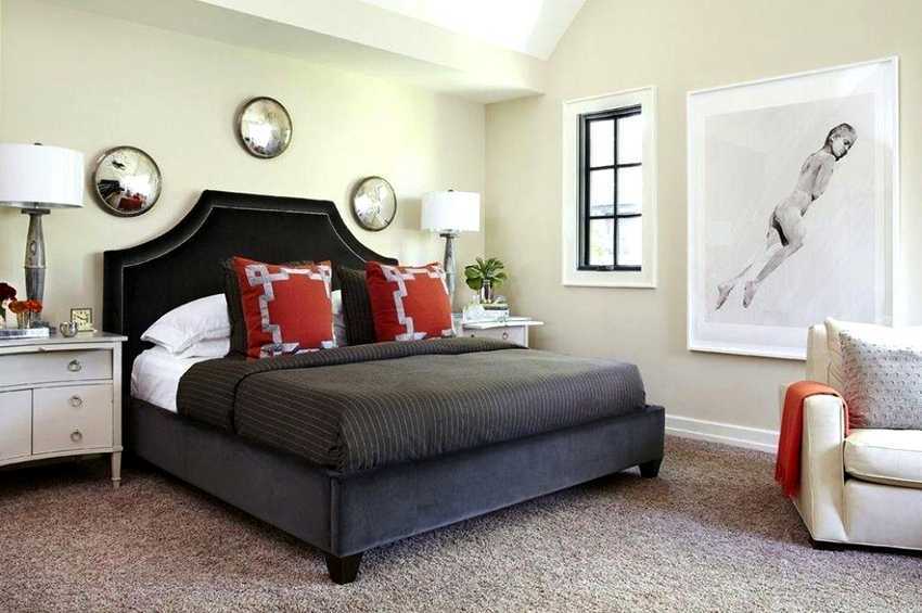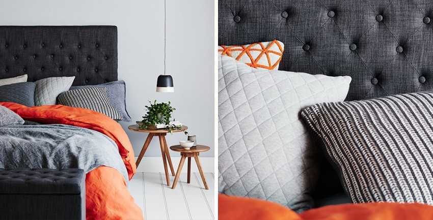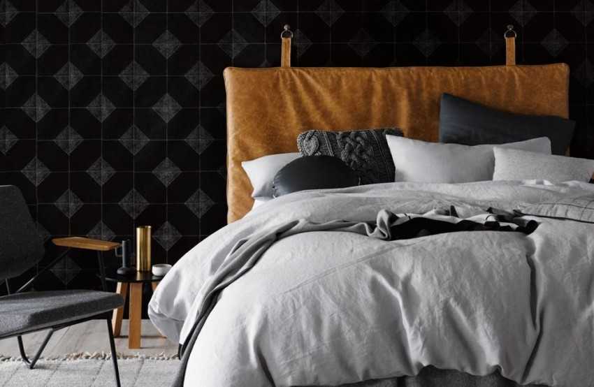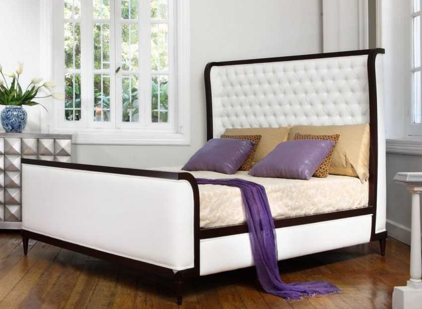 2. Материал для обивки. Это может быть ткань, как простая хлопковая или льняная, так и богатая велюровая — все зависит от общего стиля оформления спальни. Кроме того можно использовать кожу или более экзотические материалы.Однако стоит помнить, что в спальне уместны экологичные и «комфортные» материалы.