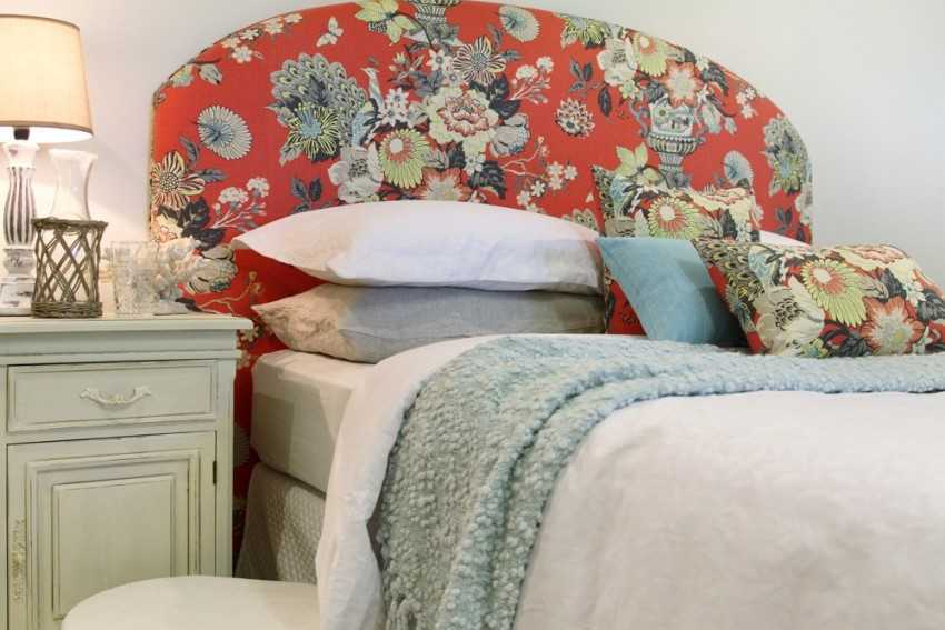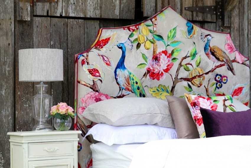 Если решается вопрос, как сделать изголовье кровати своими руками, рассматривают вариант декоративной отделки. Это может быть вышивка или рисунок на тканом материале. Тогда сначала украшается обивка, затем ее используют для отделки готового каркаса изголовья.