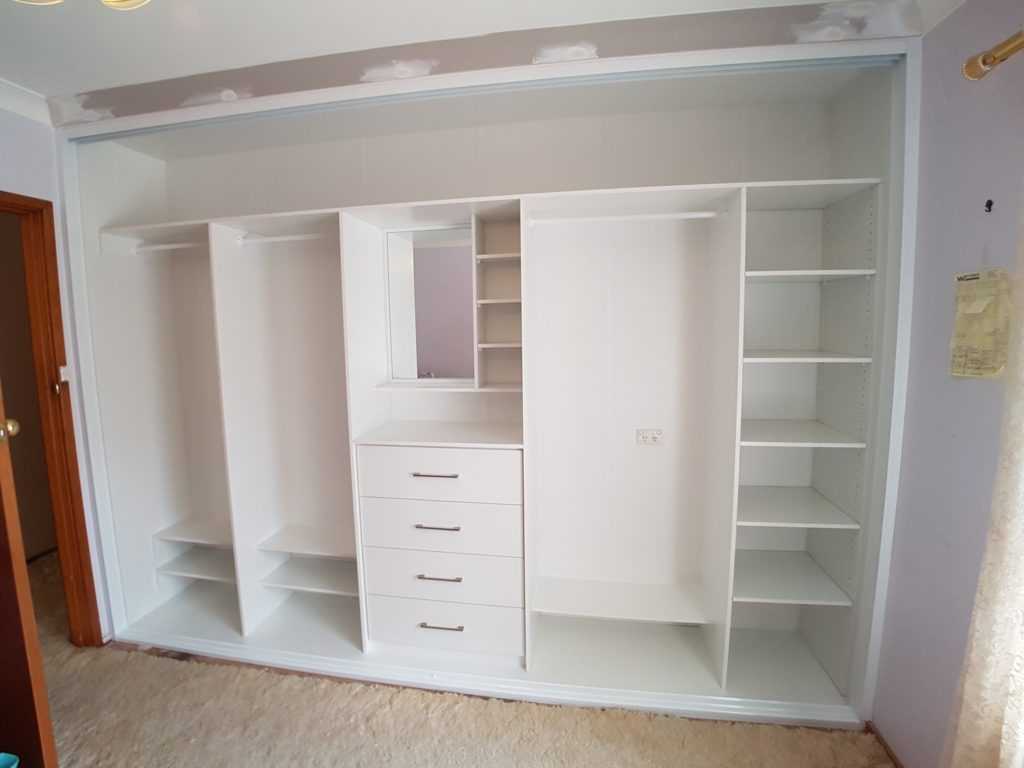 Таким образом большой шкаф-купе становится готов, он состоит из двух крупных отделений. Остается лишь собрать раздвижные двери.