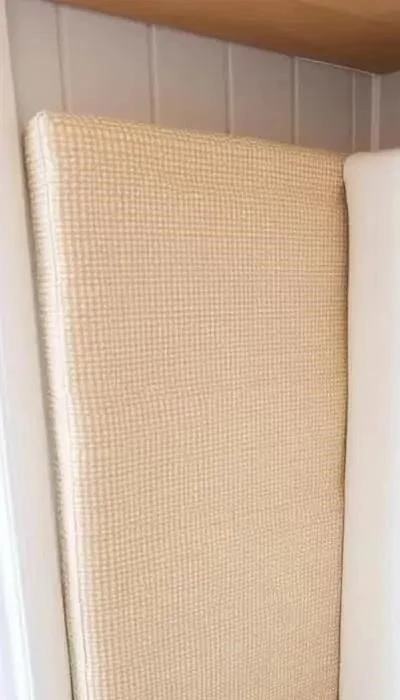 Завершающий этап. После того, как вся ткань закреплена на каркасе, обрежьте излишки. Внимательно осмотрите кухонный уголок, чтобы убедиться, что нет незакрепленных участков ткани. При необходимости добавьте дополнительные скобы.