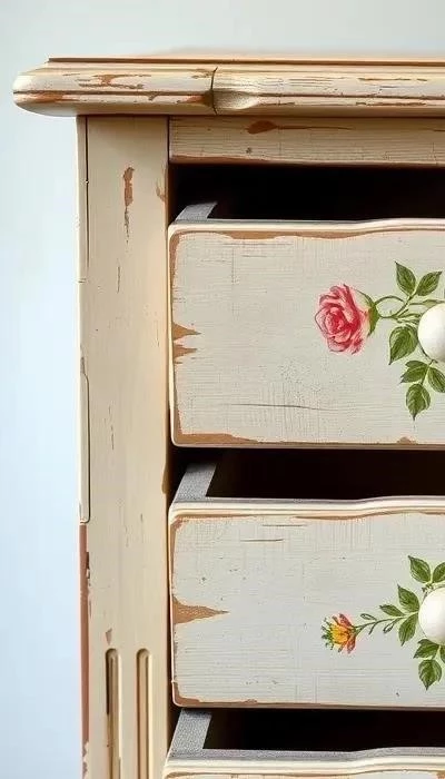 Кракелюр – техника создания искусственных трещин на поверхности мебели, имитирующая старинное покрытие. Существуют одношаговые и двухшаговые составы для кракелюра, позволяющие регулировать глубину и выраженность трещин. Двухшаговый метод дает более реалистичный эффект. Декупаж – техника декорирования мебели с помощью вырезанных изображений, наклеенных на поверхность и покрытых лаком. В стиле прованс часто используются мотивы цветов, растений, пейзажей.