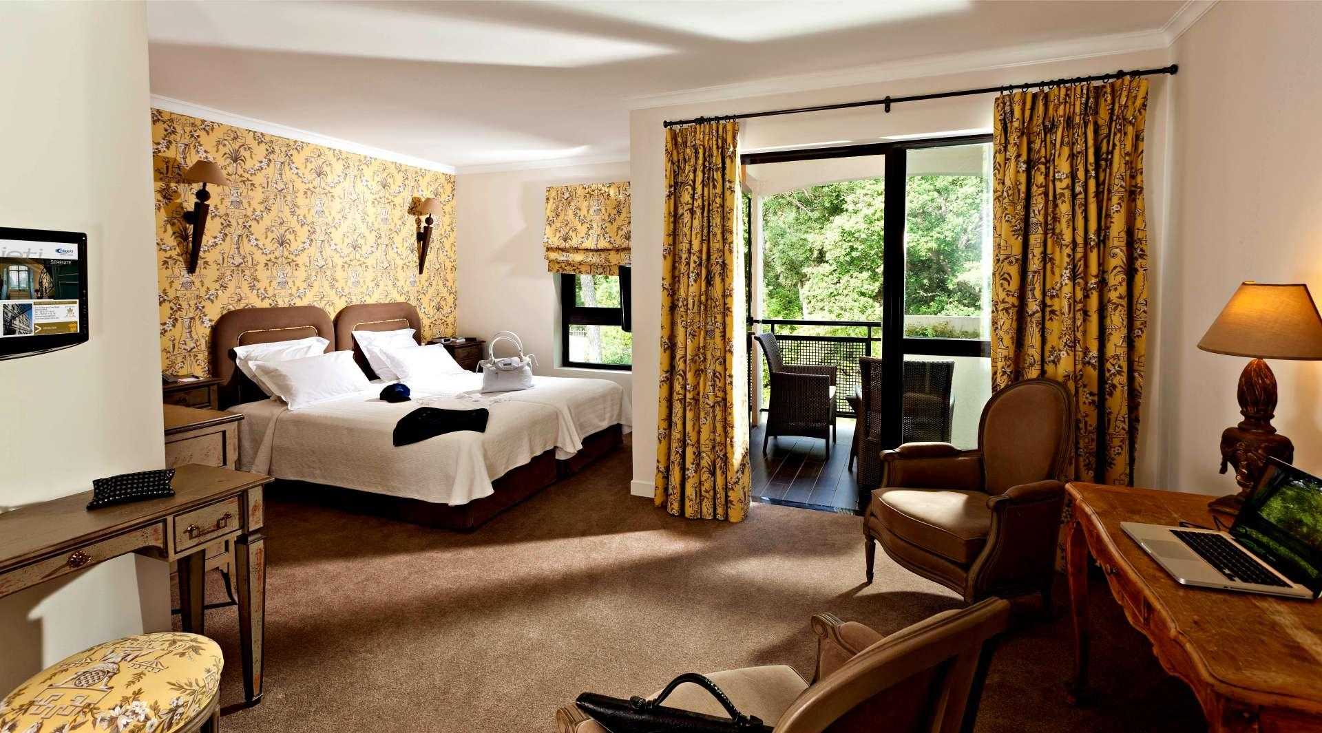 Мебель в рабочей зоне выдержана в той же цветовой гамме и в том же стиле, что и кровать